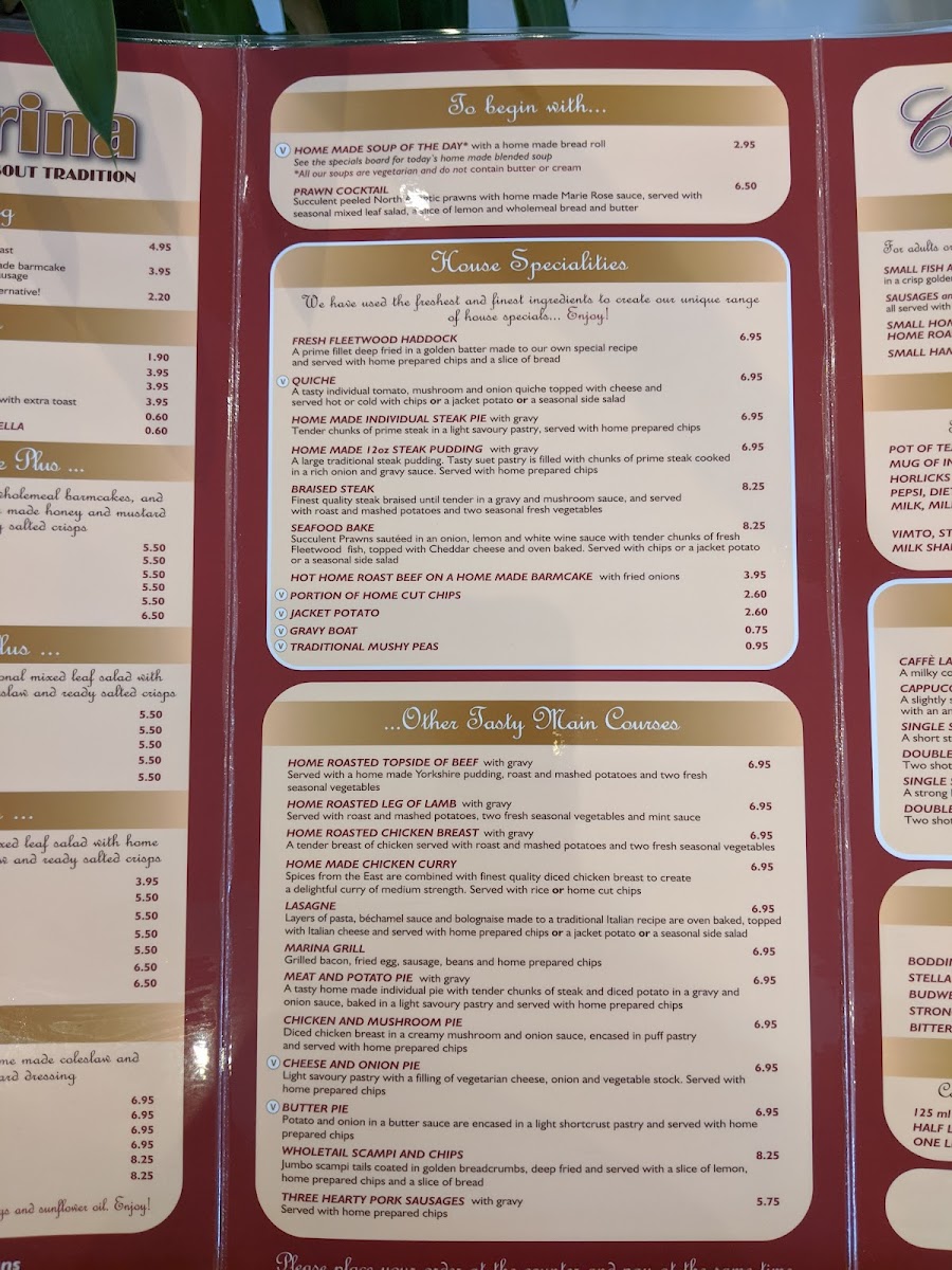 Overall, Café Marina stands out as a must-visit in Blackpool, offering a diverse menu, excellent service, and a welcoming atmosphere. Whether you're stopping by for a casual coffee or a full meal, this café promises a satisfying experience.